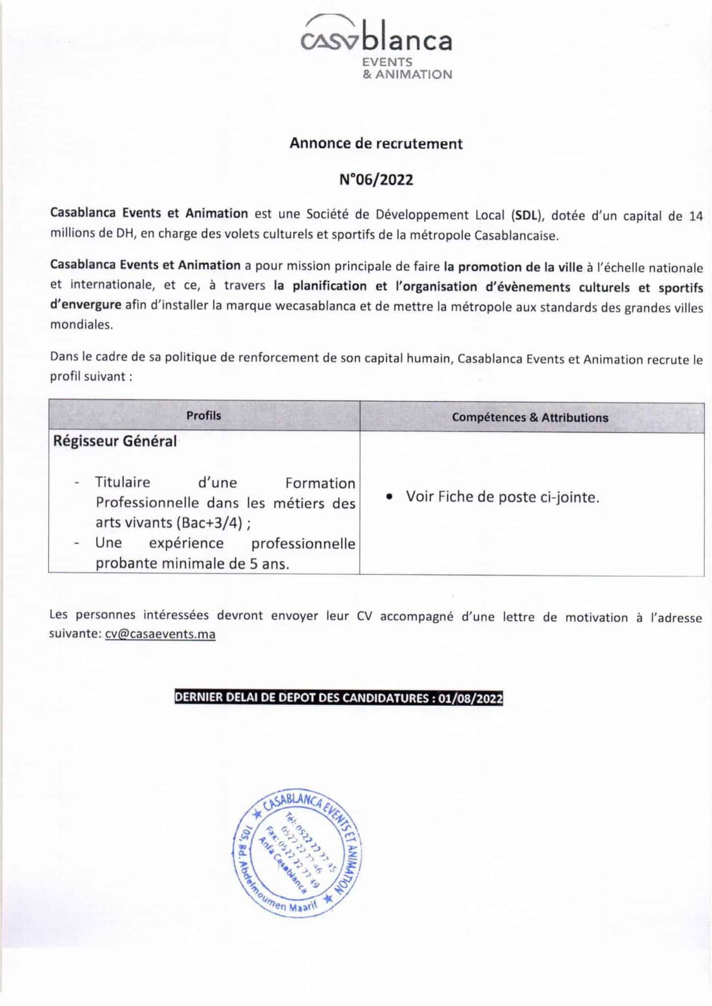 شركة التنمية المحلية الدارالبيضاء للتنشيط والتظاهرات توظف عدة مناصب